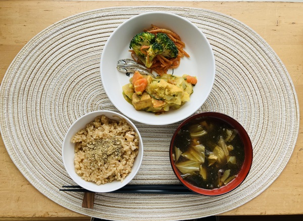 切干大根ご飯 キャベツの味噌汁 じゃがいものカレー煮 ブロッコリーのナムル いりこ