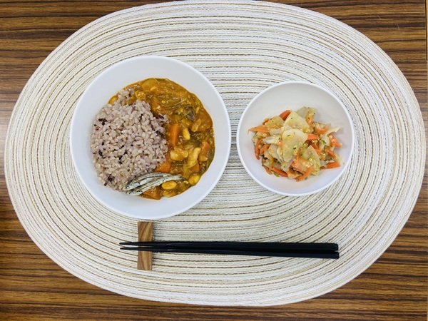 雑穀ご飯 ポークカレー 人参ドレッシングサラダ いりこ