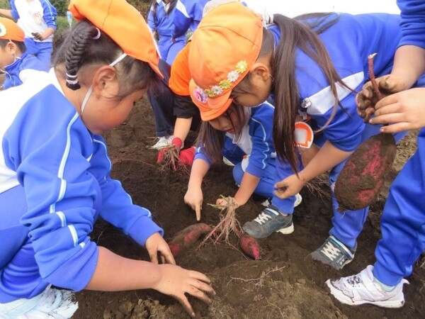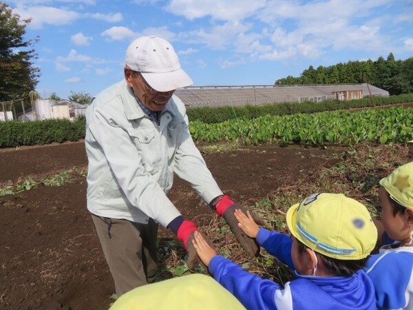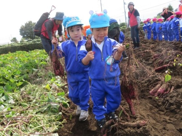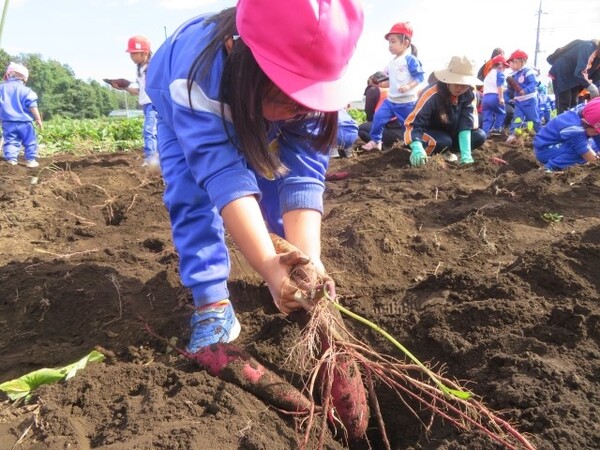 1人で掘るのが難しい時は先生やお友達、係の保護者さんを自分で呼んで手伝ってもらいました。まるで「うんとこしょ!どっこいしょ!」の歌が聞こえてきそうな楽しいおいもほりとなりました。