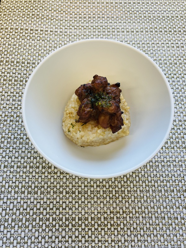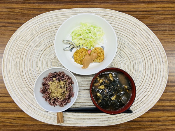 黒米ご飯 海藻の味噌汁 かぼちゃコロッケ 蒸しキャベツ いりこ