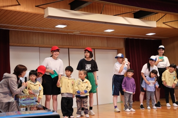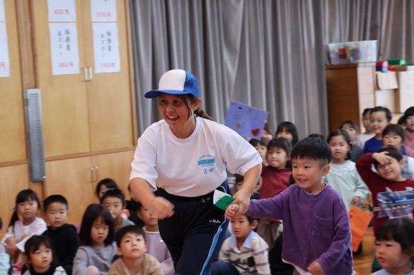 10月のお誕生日会、今回は「先生達の運動会」です。子ども達が観覧者となり、先生を応援してもらいました!気温15度の肌寒い日でしたが、本気モードの先生達は半袖短パンで気合いを入れて挑みましたよ!保護者の方々もご参加ありがとうございました。借り人競争の答えは「紫色の服を着ている人」でした!