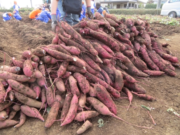 今年は良い天気に恵まれ、畑の状態もよく最高のいもほり日和となりました。手を真っ黒にしながら一生懸命土の中のおいもを掘りましたよ!